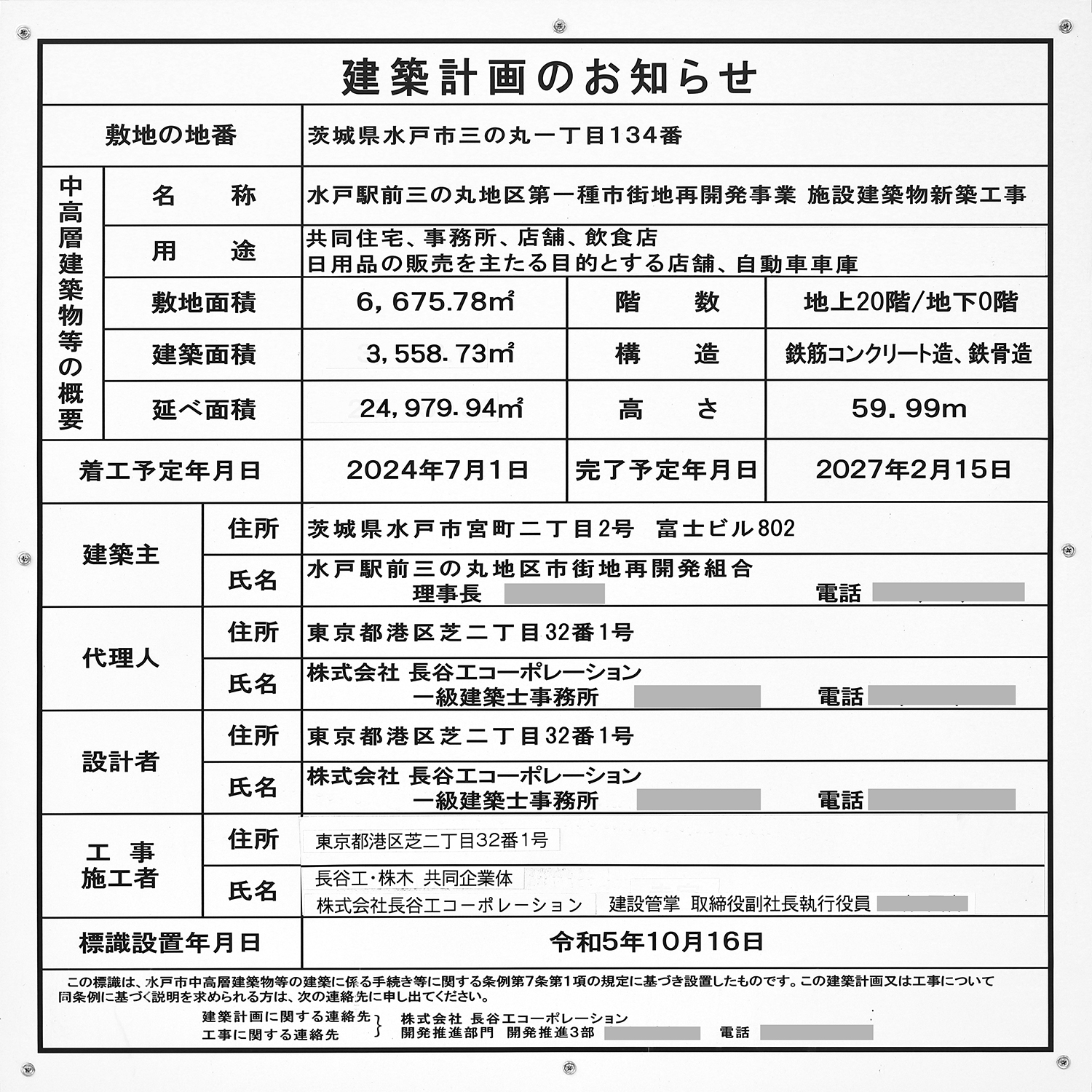 「水戸駅前三の丸地区第一種市街地再開発事業」の建築計画のお知らせ。前回撮影時と内容は同じです。写真クリックで拡大画像を表示。