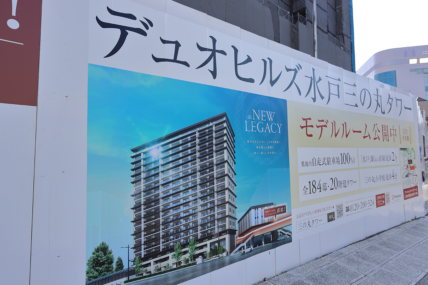 デュオヒルズ水戸三の丸タワーは、フージャースコーポレーションが水戸駅北口において分譲する地上20階、高さ59.99m、総戸数184戸の高層マンションです。 建築主は水戸駅前三の丸地区市街地再開発組合、設計は長谷工コーポレーション、施工は長谷工・株木JV。 2026年11月下旬に竣工し、2027年2月下旬に入居を開始する予定です。