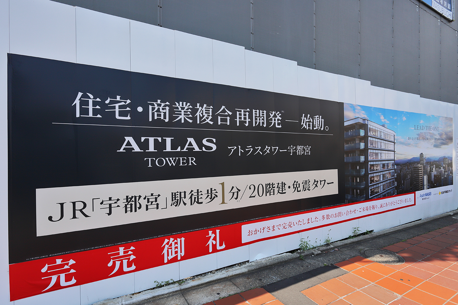 [事業関係者] 事業推進コンサルタント………株式会社再開発計画オフィス 基本計画・設計…………………AIS総合設計株式会社 参加組合員………………………旭化成不動産レジデンス株式会社 [アトラスタワー宇都宮](公式サイトより) ◆売主……………旭化成不動産レジデンス株式会社 ◆販売代理………住友不動産販売株式会社 ◆総戸数…………住宅101戸(非分譲4戸含む)、店舗7区画 ◆間取り…………1LDK~4LDK(販売対象住戸) ◆専有面積………39.67㎡~95.27㎡(販売対象住戸) ◆駐車場…………タワーパーキング102台 ◆竣工予定………2026年7月下旬 ◆入居予定………2026年9月下旬 ◆旭化成不動産レジデンス2023年9月27日付ニュースリリース(着工)は→こちら |
