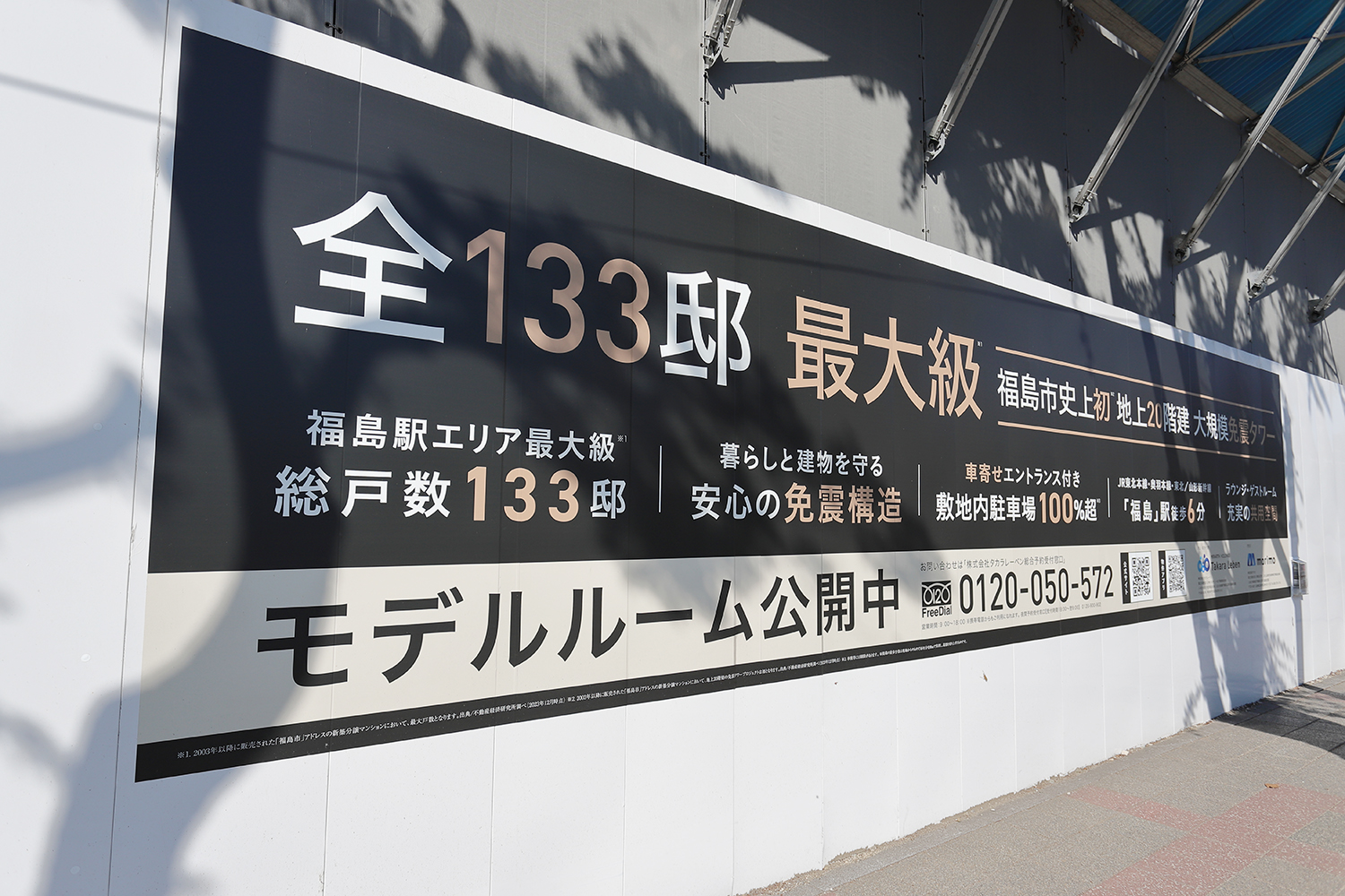 レーベン福島 ONE TOWERは、タカラレーベンとマリモが福島市太田町において分譲する地上20階、高さ61.30m、総戸数133戸の高層マンションです。 設計は創建設計、施工は大末建設。 2026年2月下旬に竣工し、3月下旬に入居を開始する予定です。