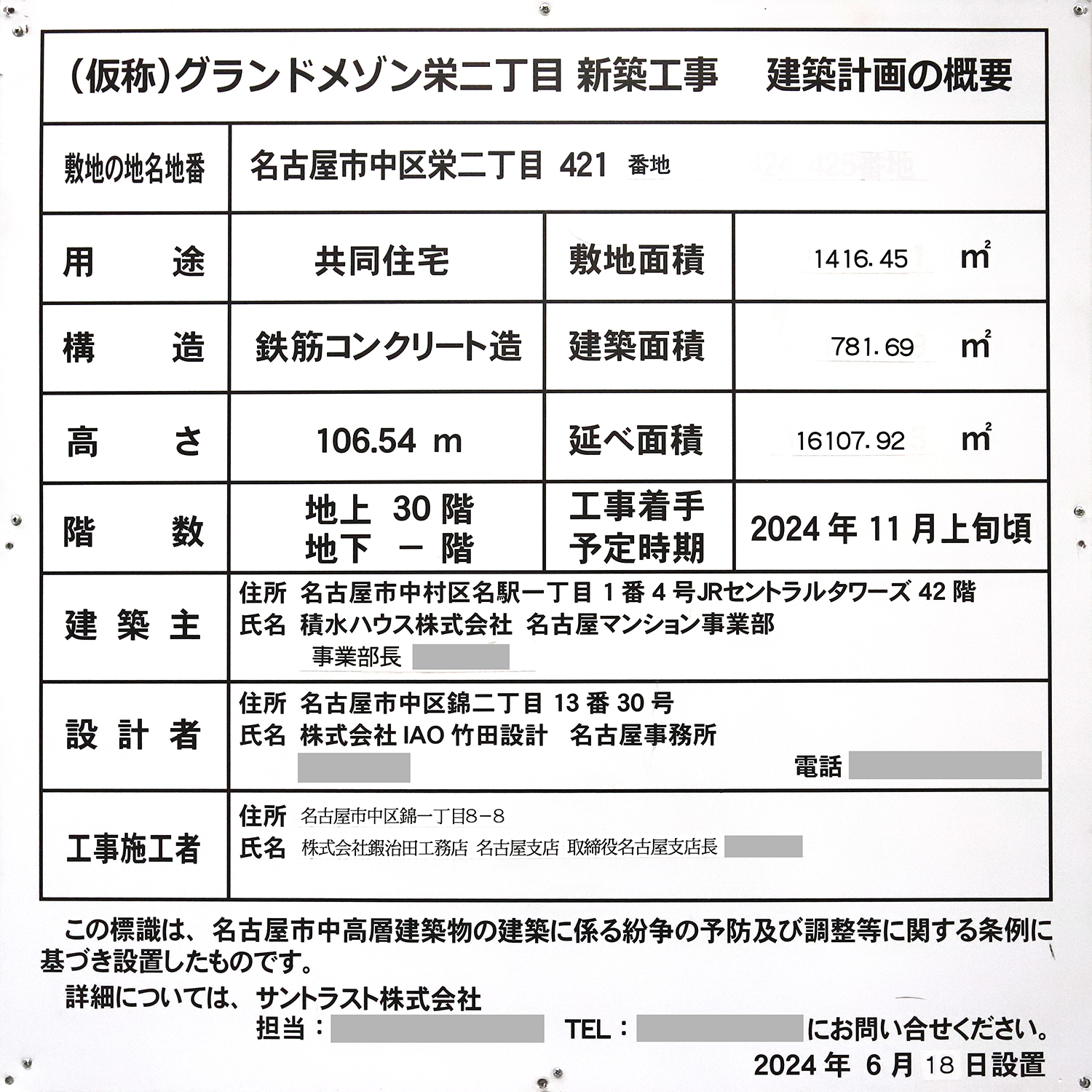 | 名 称 | (仮称)グランドメゾン栄二丁目新築工事 |