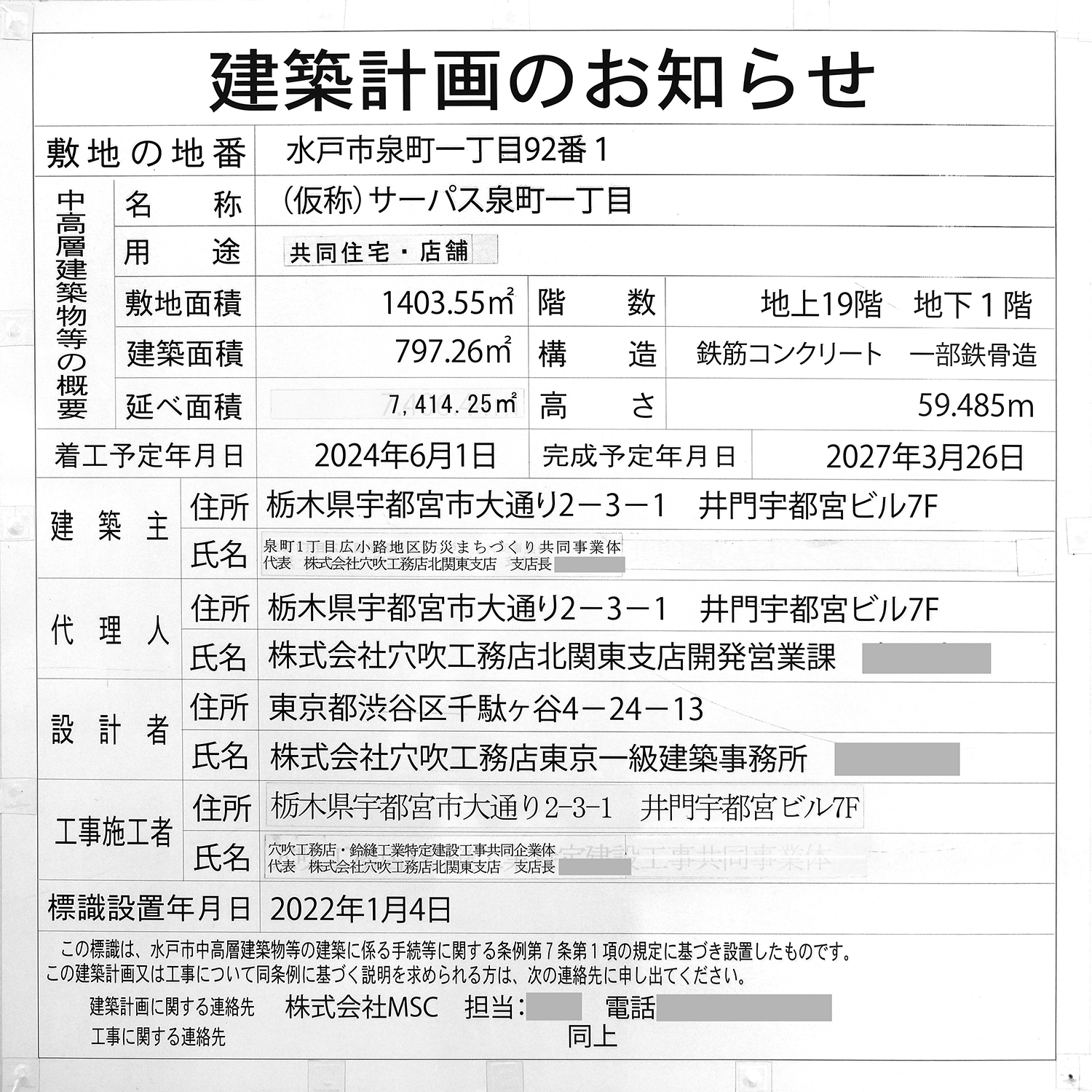 「サーパスタワー水戸泉町」の建築計画のお知らせ。前回撮影時と内容は同じです。